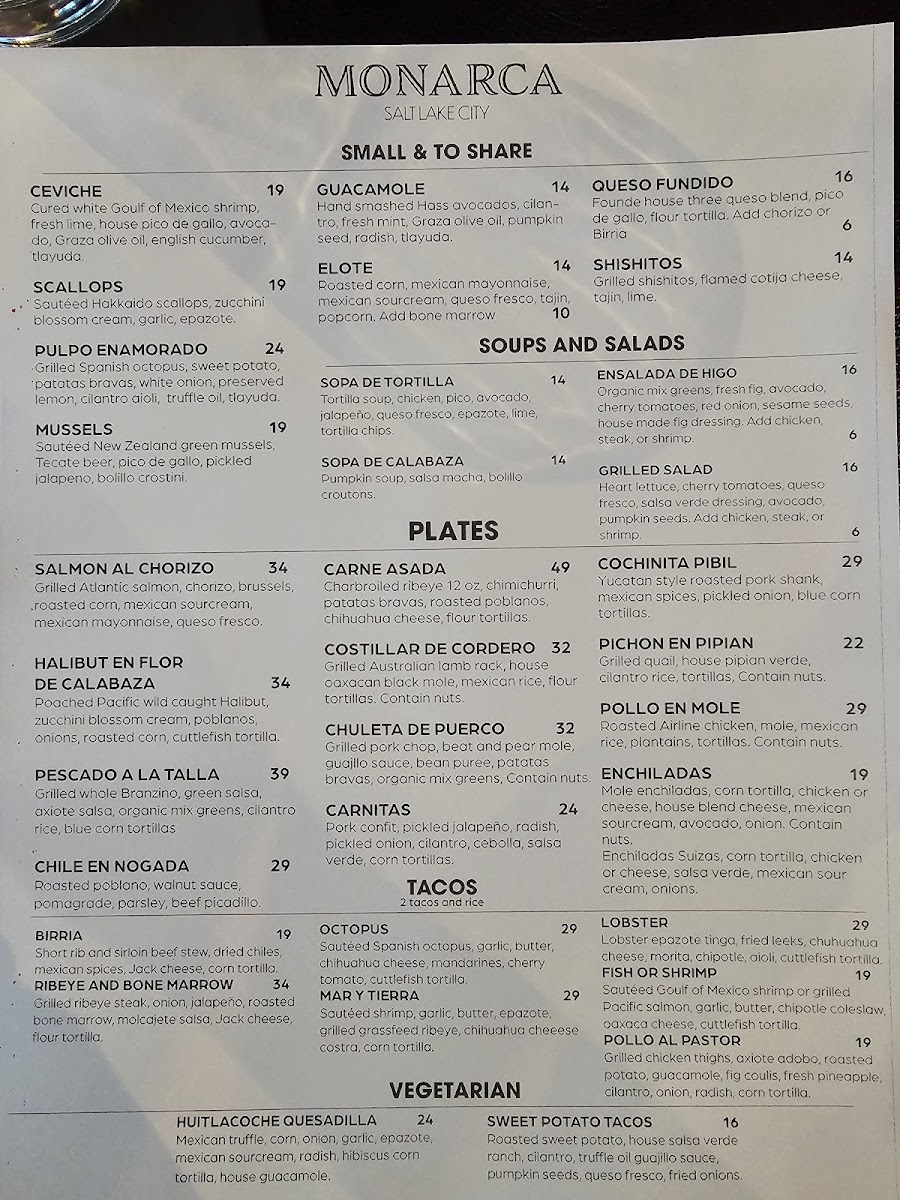 Marinated 12oz rib-eye, roasted poblanos with crema, and patatas bravas.